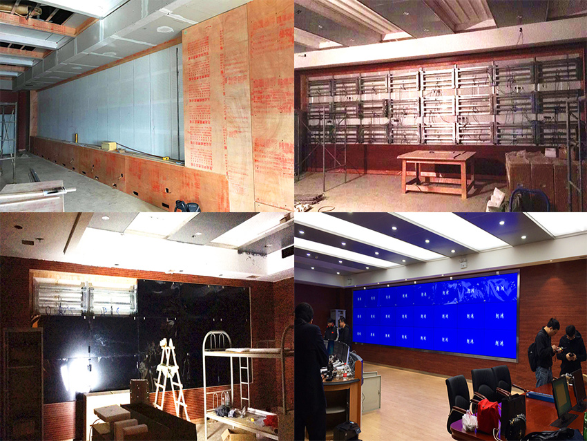 此次項(xiàng)目較大較為復(fù)雜,時(shí)間緊任務(wù)急,要在指揮中心安裝兩套大屏,分別采用信弘55寸(S55-XHL1ME)1.8mm拼縫,3×8,24塊液晶拼接屏,和55寸(S55-XHL2ME)3.5mm拼縫,3×5,15塊液晶拼接屏,前維護(hù)安裝方式。為保證項(xiàng)目整體順利實(shí)施,信弘工程師克服了現(xiàn)場(chǎng)諸多困難,努力將細(xì)節(jié)之處做到完美,安裝、調(diào)試、驗(yàn)收、培訓(xùn)等都非常順利,在春運(yùn)前順利完成施工。