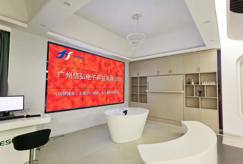 該企業(yè)之前已經(jīng)采用信弘55寸(XHL2ME),3.5mm拼縫液晶拼接屏3×4的拼接方式,信弘55寸(XHL2ME)液晶拼接屏,3.5mm拼縫 2×2的拼接方式,